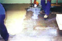 de argamassa epóxi com areia e epóxi auto-nivelante